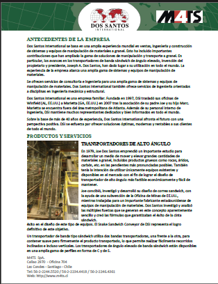 En M4TS Chile nos enorgullece ser representantes de Dos Santos International, empresa estadounidense fundada en 1997 y reconocida globalmente por su innovación en sistemas de transporte de alto ángulo.